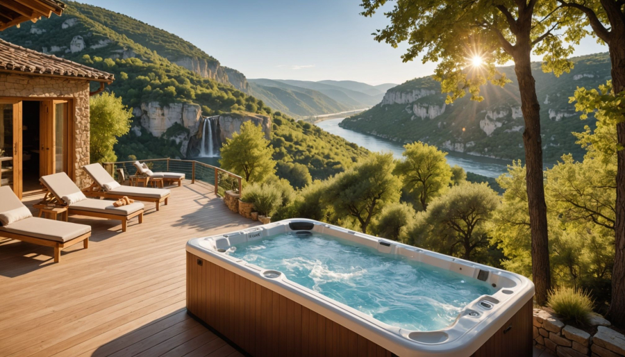 - Bains bouillonnants extérieurs : jacuzzis chauffés offrant une relaxation optimale face aux paysages ardéchois